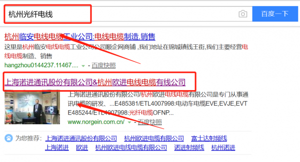 我們公司與杭州歐進(jìn)電線電纜有限公司合作中,對(duì)這個(gè)公司所經(jīng)營的光纖電線這個(gè)行業(yè)提供了百度快照排名,與該公司的合作,更多的客戶讓我們公司為其提供百度快照排名,通過每一次合作,我們公司不斷完善自己,同時(shí)希望合作伙伴在經(jīng)營的路上越來越好。