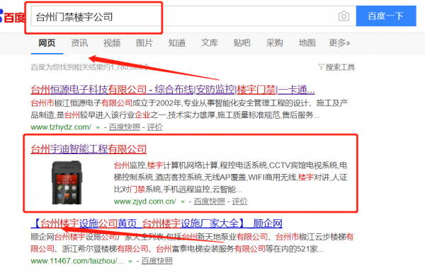 臺州宇*智能工程有限公司選用我司企業(yè)門禁樓宇的網(wǎng)站優(yōu)化產(chǎn)品,其SEO關(guān)鍵詞有門禁樓宇。通過SEO做好排名后,一般可以保持半年以上的良好效果,大大節(jié)約成本,有效提升企業(yè)品牌知名度。按日收費,不限次數(shù)點擊,為企業(yè)呈現(xiàn)每一步優(yōu)化效果,有據(jù)可循,并承諾關(guān)鍵字上了百度首頁才扣費。臺州宇*智能工程有限公司成立于2010年,是經(jīng)臺州市市場監(jiān)督管理局審核的有資質(zhì)的公司,其統(tǒng)一社會信用代碼:91331000**1780728C。公司地址:浙江省臺州市緯一路1-49號3幢二層A區(qū)。