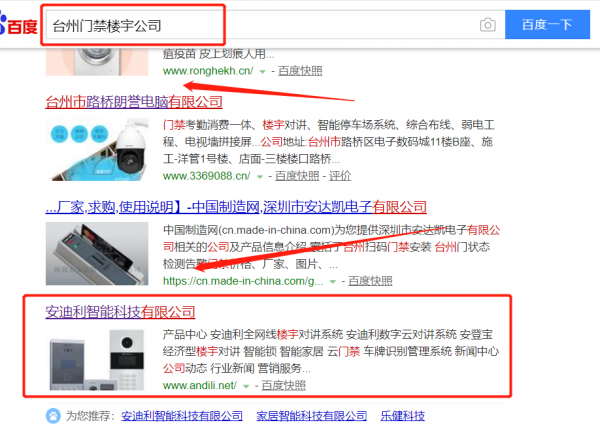 安迪*智能科技有限公司選用我司企業(yè)門禁樓宇的網(wǎng)站優(yōu)化產(chǎn)品,其SEO關(guān)鍵詞有門禁樓宇。通過SEO做好排名后,一般可以保持半年以上的良好效果,大大節(jié)約成本,有效提升企業(yè)品牌知名度。按日收費,不限次數(shù)點擊,為企業(yè)呈現(xiàn)每一步優(yōu)化效果,有據(jù)可循,并承諾關(guān)鍵字上了百度首頁才扣費。安迪*智能科技有限公司成立于2009年,是經(jīng)臺州市市場監(jiān)督管理局審核的有資質(zhì)的公司,其統(tǒng)一社會信用代碼:91331001**2ANCH73A。公司地址:浙江省臺州市開發(fā)區(qū)開發(fā)大道東段188號六號樓6202。