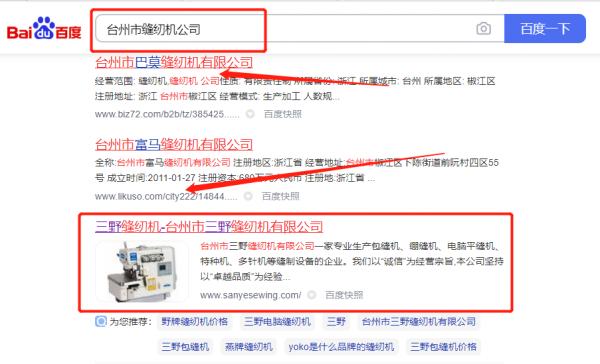 臺州森*縫紉機有限公司SEO優(yōu)化到首頁按天扣費