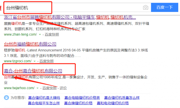 臺州嘉合縫紉機有限公司與我司簽下百度霸屏協(xié)議