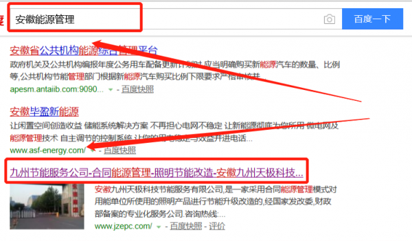 我們公司與安徽九州天極科技節(jié)能服務(wù)有限公司合作中,對(duì)這個(gè)公司所經(jīng)營(yíng)的能源管理這個(gè)行業(yè)提供了SEO推廣,與該公司的合作,更多的客戶讓我們公司為其提供SEO推廣,通過(guò)每一次合作,我們公司不斷完善自己,同時(shí)希望合作伙伴在經(jīng)營(yíng)的路上越來(lái)越好。