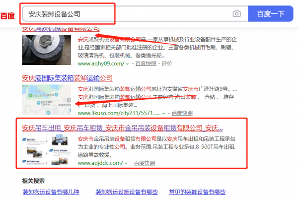 安慶市*吊吊裝設備租賃有限公司選用我司企業(yè)裝卸設備的網(wǎng)站優(yōu)化產(chǎn)品,其SEO關(guān)鍵詞有裝卸設備。不管是PC、還是移動端、微信或B2B行業(yè)平臺,做到網(wǎng)絡推廣無死角,全方位覆蓋。根據(jù)用戶的意圖和行為數(shù)據(jù),精準用戶畫像,識別每一位用戶真實需求及興趣愛好,實現(xiàn)最大化廣告效果。安慶市*吊吊裝設備租賃有限公司成立于1999年,是經(jīng)安慶市市場監(jiān)督管理局審核的有資質(zhì)的公司,其統(tǒng)一社會信用代碼:91340800**2RFUKG7T。公司地址:安徽省安慶市迎江區(qū)先鋒巷14幢4單元507室。