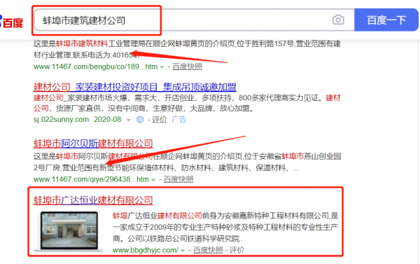 我們公司與蚌埠*達(dá)恒業(yè)建材有限公司合作中,對(duì)這個(gè)公司所經(jīng)營的電池這個(gè)行業(yè)提供了百度快照排名,與該公司的合作,更多的客戶讓我們公司為其提供百度快照排名,通過每一次合作,我們公司不斷完善自己,同時(shí)希望合作伙伴在經(jīng)營的路上越來越好。