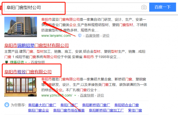 阜陽(yáng)市雅致門(mén)窗有限公司選用我司企業(yè)門(mén)窗型材的網(wǎng)站優(yōu)化產(chǎn)品,其SEO關(guān)鍵詞有門(mén)窗型材。主要針對(duì)百度、搜狗、360等搜索引擎進(jìn)行快速排名優(yōu)化服務(wù),關(guān)鍵詞排名必要條件是在搜索結(jié)果前3頁(yè),周期15天內(nèi)可優(yōu)化到搜索引擎首頁(yè)。阜陽(yáng)市雅致門(mén)窗有限公司成立于2016年,是經(jīng)阜陽(yáng)市市場(chǎng)監(jiān)督管理局審核的有資質(zhì)的公司,其統(tǒng)一社會(huì)信用代碼:91341200MA2MT46N66。公司地址:安徽省阜陽(yáng)市潁泉區(qū)聞集鎮(zhèn)大寧村哈油坊16號(hào)。