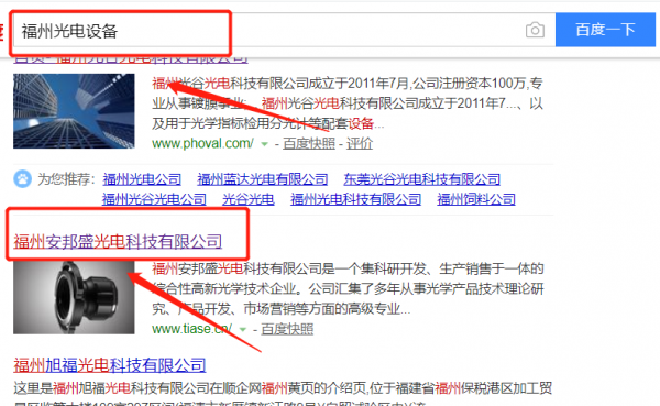 我們公司與福州安邦盛光電科技有限公司合作中,對這個公司所經(jīng)營的光電設(shè)備這個行業(yè)提供了百度快照排名,與該公司的合作,更多的客戶讓我們公司為其提供百度快照排名,通過每一次合作,我們公司不斷完善自己,同時希望合作伙伴在經(jīng)營的路上越來越好。
