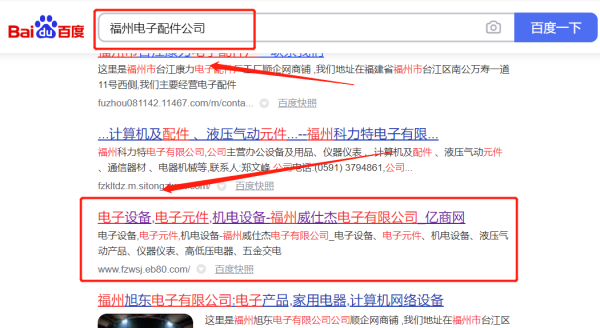 福州威*杰電子有限公司選用我司企業(yè)電子配件行業(yè)的網(wǎng)站優(yōu)化產(chǎn)品,其SEO關(guān)鍵詞有電子配件。海洋網(wǎng)絡(luò)互聯(lián)擁有十幾名專業(yè)深圳SEO工程師,文案策劃,海量軟文資源,外鏈團(tuán)隊(duì)和編輯團(tuán)隊(duì),排名有保障。網(wǎng)站做好以后,我們免費(fèi)幫您提交熱門搜索引擎,讓百度收錄,并且?guī)湍鷥?yōu)化公司品牌關(guān)鍵詞排名。福州威*杰電子有限公司成立于2016年,是經(jīng)福州市市場監(jiān)督管理局審核的有資質(zhì)的公司,其統(tǒng)一社會信用代碼:91350104M**4681P14。公司地址:福建省福州市倉山區(qū)建新鎮(zhèn)紅江路79號福州升盛機(jī)電有限公司廠房改擴(kuò)建工程整座3層382室。