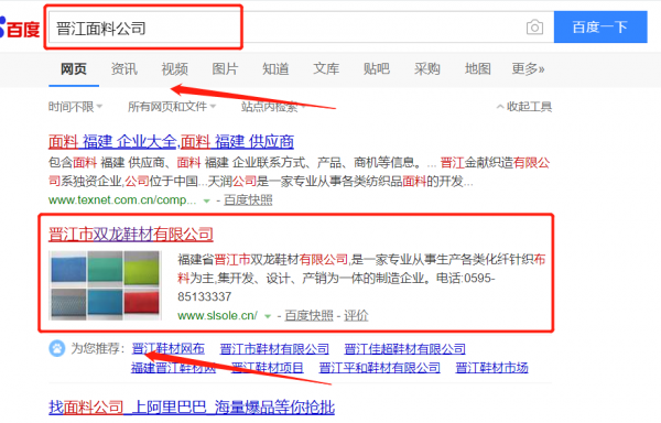 晉江市*龍鞋材有限公司選用我司企業(yè)面料的網(wǎng)站優(yōu)化產(chǎn)品,其SEO關(guān)鍵詞有面料的。按天計費,最快7天上詞,不到首頁不扣費。關(guān)鍵詞質(zhì)量保證,白帽SEO符合百度算法,360、搜狗、移動端等排名效果免費贈送。晉江市*龍鞋材有限公司成立于2002年,是經(jīng)晉江市市場監(jiān)督管理局審核的有資質(zhì)的公司,其統(tǒng)一社會信用代碼:91350582**3633358J。公司地址:福建省晉江市陳埭四境工業(yè)區(qū)。