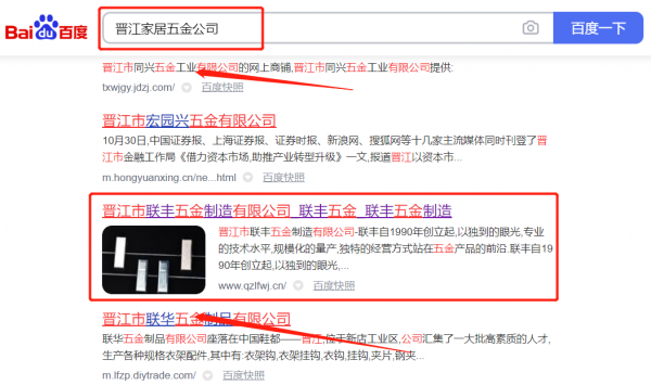 晉江市聯(lián)*五金制造有限公司關(guān)鍵詞推廣排名效果展示