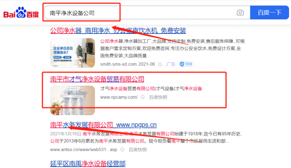 南平市*氣凈水設(shè)備貿(mào)易有限公司整站優(yōu)化到首頁無排名不收費