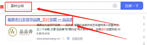 福建品品香茶業(yè)有限公司百度排名快照案例欣賞