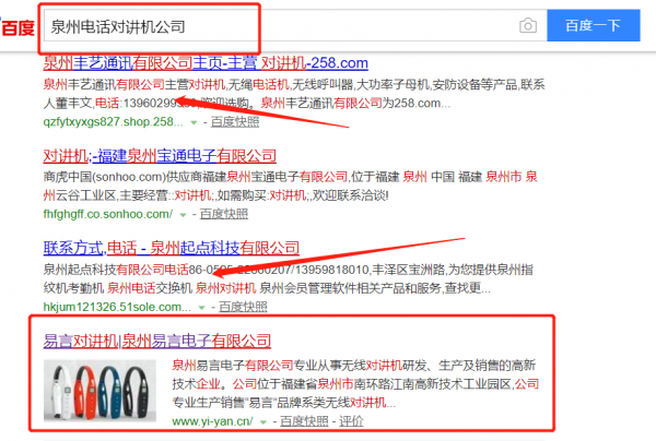 泉州易言電子有限公司選用我司企業(yè)電話對講機的網(wǎng)站優(yōu)化產(chǎn)品,其SEO關(guān)鍵詞有電話對講機。定位清晰,打造網(wǎng)站的品牌力,從微信小程序開發(fā)到關(guān)鍵詞排名優(yōu)化,再結(jié)合各種營銷模式,充分發(fā)掘網(wǎng)站的營銷功能。泉州易言電子有限公司成立于2015年,是經(jīng)泉州市市場監(jiān)督管理局審核的有資質(zhì)的公司,其統(tǒng)一社會信用代碼:91350502MA2XN16B72。公司地址:福建省泉州市鯉城區(qū)常泰街道南環(huán)路928號1號廠房2樓。