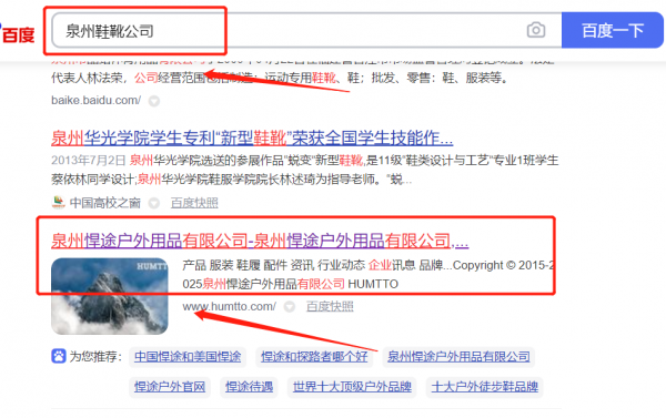我們公司與泉州*途戶外用品有限公司合作中,對(duì)這個(gè)公司所經(jīng)營(yíng)的鞋靴這個(gè)行業(yè)提供了SEO,與該公司的合作,更多的客戶讓我們公司為其提供搜索引擎優(yōu)化推廣,通過每一次合作,我們公司不斷完善自己,同時(shí)希望合作伙伴在經(jīng)營(yíng)的路上越來越好。