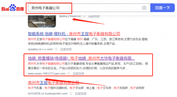 泉州市大*電子衡器有限公司關鍵詞排名到首頁按天扣費