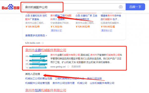 泉州市*霞機(jī)械配件有限公司新站排名快上詞效果展示
