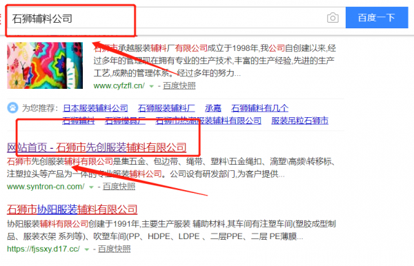 石獅市先創(chuàng)服裝輔料有限公司與本司簽約百度快照排名協(xié)議