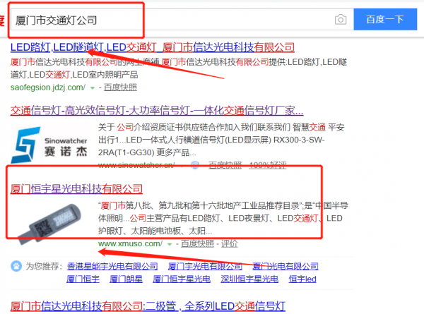 我們公司與廈門恒宇星光電科技有限公司合作中,對這個(gè)公司所經(jīng)營的交通燈這個(gè)行業(yè)提供了百度快照排名,與該公司的合作,更多的客戶讓我們公司為其提供百度快照排名,通過每一次合作,我們公司不斷完善自己,同時(shí)希望合作伙伴在經(jīng)營的路上越來越好。