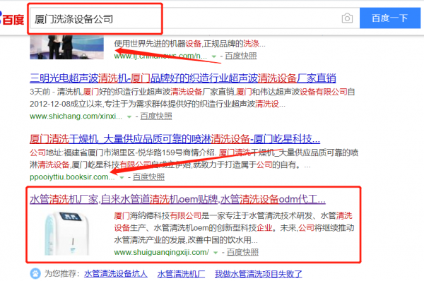 我們公司與廈門海納德科技有限公司合作中,對這個公司所經(jīng)營的洗滌設(shè)備這個行業(yè)提供了搜索引擎優(yōu)化推廣,與該公司的合作,更多的客戶讓我們公司為其提供搜索引擎優(yōu)化推廣,通過每一次合作,我們公司不斷完善自己,同時希望合作伙伴在經(jīng)營的路上越來越好。