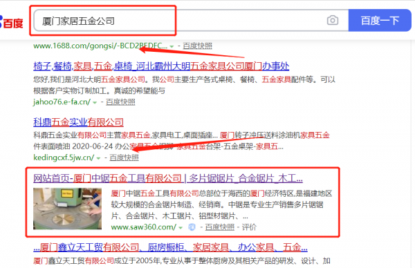 廈門*鋸五金工具有限公司選用我司企業(yè)家居五金的網站優(yōu)化產品,其SEO關鍵詞有家居五金。SEO排名24小時在線,任何時間都能讓客戶看到你,SEO屬于搜索引擎營銷,獲取的流量更精準,能夠給企業(yè)帶來持續(xù)不斷的優(yōu)質營銷訂單。廈門*鋸五金工具有限公司成立于2010年,是經廈門市市場監(jiān)督管理局審核的有資質的公司,其統(tǒng)一社會信用代碼:9135020**56249653B。公司地址:福建省廈門市思明區(qū)僑岳里36號401室。