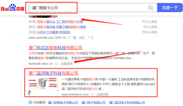 廈門*河電子科技有限公司選用我司企業(yè)智能卡的網(wǎng)站優(yōu)化產品,其SEO關鍵詞有智能卡。通過反饋站點的客戶體驗給搜索引擎,提升網(wǎng)站的關注度和友好度,從而達到關鍵字排名迅速提升的效果。廈門*河電子科技有限公司成立于2011年,是經廈門市市場監(jiān)督管理局審核的有資質的公司,其統(tǒng)一社會信用代碼:91350200**84470675。公司地址:福建省廈門市軟件園二期望海路19號101室B區(qū)。