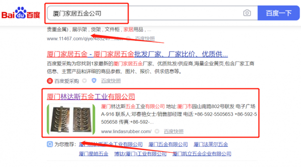廈門林*斯五金工業(yè)有限公司選用我司企業(yè)家居五金的網站優(yōu)化產品,其SEO關鍵詞有家居五金。通過百度SEO優(yōu)化排名技術幫助企業(yè)網站挖掘客戶潛在需求,提升關鍵詞排名和客戶咨詢量。通過搜索引擎優(yōu)化為企業(yè)帶來持續(xù)、低成本的自然流量,提升企業(yè)銷售額,使企業(yè)由被動營銷網絡推廣變?yōu)橹鲃訝I銷網絡推廣。廈門林*斯五金工業(yè)有限公司成立于2005年,是經廈門市市場監(jiān)督管理局審核的有資質的公司,其統(tǒng)一社會信用代碼:913502067**028481U。公司地址:福建省廈門市湖里區(qū)園山南路802號聯(lián)發(fā)電子商城A棟9層16單元。