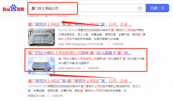 廈門*比小熊床上用品有限公司SEO最快上詞效果展示