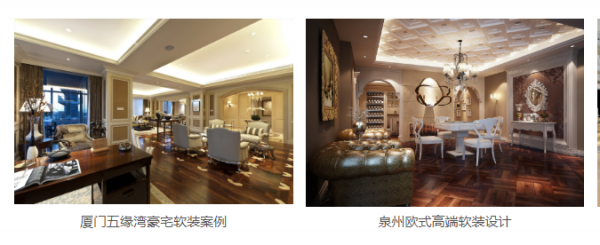 廈門家居*軟裝設(shè)計(jì)有限公司,專注于地產(chǎn)樣板房,售樓處,豪宅,別墅,會(huì)所,星級(jí)酒店軟裝設(shè)計(jì)。家居薈是集設(shè)計(jì)配套實(shí)施為一體化的專業(yè)軟裝服務(wù)體系,是一家注重研究和提升高素質(zhì)人群的生活方式為至尚追求的專業(yè)軟裝設(shè)計(jì)公司。以“臻選全球·空間美學(xué)·環(huán)保家居”為公司理念,以尊重“人、空間、大自然”的設(shè)計(jì)思路,將文化、藝術(shù)和品位植入每個(gè)軟裝作品中,為客戶提供最具藝術(shù)價(jià)值的整體家居軟裝一站式服務(wù)。家居薈以不斷發(fā)掘和營(yíng)造空間藝術(shù)內(nèi)涵為導(dǎo)向,以提供全球高品質(zhì)環(huán)保家居產(chǎn)品為準(zhǔn)則,專業(yè)提供住宅空間、商業(yè)空間和辦公空間整體軟裝解決方案。家居匯擁有高級(jí)軟裝設(shè)計(jì)師團(tuán)隊(duì),我們的設(shè)計(jì)方案受到客戶一致認(rèn)可和好評(píng),我們可以滿足不同風(fēng)格的軟裝訴求。家居薈軟裝服務(wù)內(nèi)容:整體家具配套、燈飾、布藝(窗簾、墻紙墻布和床上用品等)、裝飾品、掛畫擺件、花藝和各類藝術(shù)家居裝飾品的整體陳設(shè)布場(chǎng)。