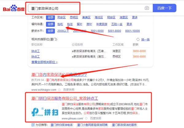 廈門*掃保潔服務(wù)有限公司整站優(yōu)化排名案例欣賞