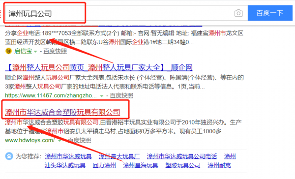 漳州市華達(dá)威合金塑膠玩具有限公司跟本公司簽訂快速排名合同