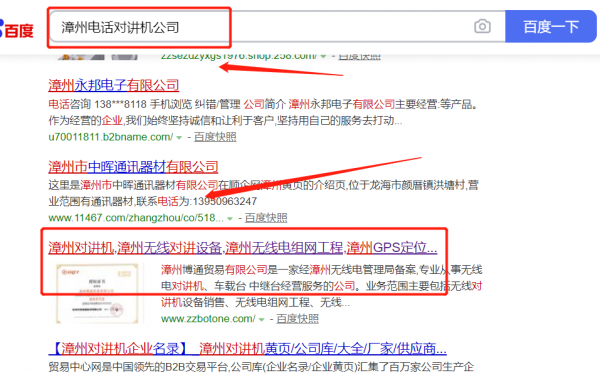 漳州*通貿(mào)易有限公司選用我司企業(yè)電話對(duì)講機(jī)行業(yè)的網(wǎng)站優(yōu)化產(chǎn)品,其SEO關(guān)鍵詞有電話對(duì)講機(jī)。獲取訪客手機(jī)號(hào)等精準(zhǔn)信息,自動(dòng)生成網(wǎng)站流量和關(guān)鍵詞排名報(bào)告,推廣效果一目了然,無(wú)需專業(yè)人員打理。漳州*通貿(mào)易有限公司成立于2011年,是經(jīng)漳州市市場(chǎng)監(jiān)督管理局審核的有資質(zhì)的公司,其統(tǒng)一社會(huì)信用代碼:91350602**3143010C。公司地址:福建省漳州市薌城區(qū)勝利西路北側(cè)、金峰北路西側(cè)永鴻三湘城1幢209號(hào)。