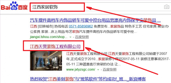 我們公司與江西天譽(yù)裝飾工程有限公司合作中,對(duì)這個(gè)公司所經(jīng)營的家居軟飾這個(gè)行業(yè)提供了百度快照排名,與該公司的合作,更多的客戶讓我們公司為其提供百度快照排名,通過每一次合作,我們公司不斷完善自己,同時(shí)希望合作伙伴在經(jīng)營的路上越來越好。
