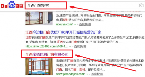 我們公司與江西寶德佳利門窗有限公司合作中,對(duì)這個(gè)公司所經(jīng)營(yíng)的門窗型材這個(gè)行業(yè)提供了百度快照排名,與該公司的合作,更多的客戶讓我們公司為其提供百度快照排名,通過每一次合作,我們公司不斷完善自己,同時(shí)希望合作伙伴在經(jīng)營(yíng)的路上越來(lái)越好。