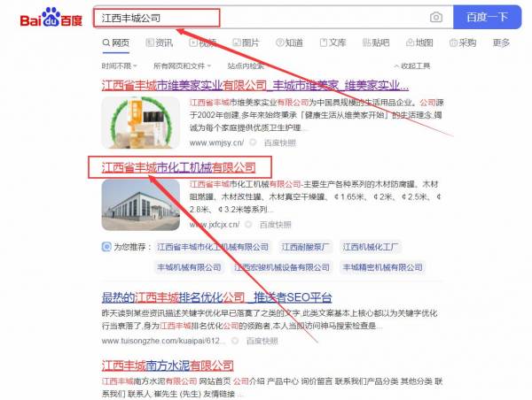 江西省豐城市*工機械有限公司百度關(guān)鍵詞排名保證在首頁效果