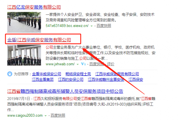 我們公司與江西華威保安服務(wù)有限公司公司合作中,對這個公司所經(jīng)營的保安公司這個行業(yè)提供了快速排名,同時讓我們積累到更多的經(jīng)驗,與江西華威保安服務(wù)有限公司這個公司建立了友好的合作伙伴的關(guān)系,也提高了海洋網(wǎng)絡(luò)在同行業(yè)的知名度,提高了江西華威保安服務(wù)有限公司在同行業(yè)的知名度,發(fā)展越來越好。