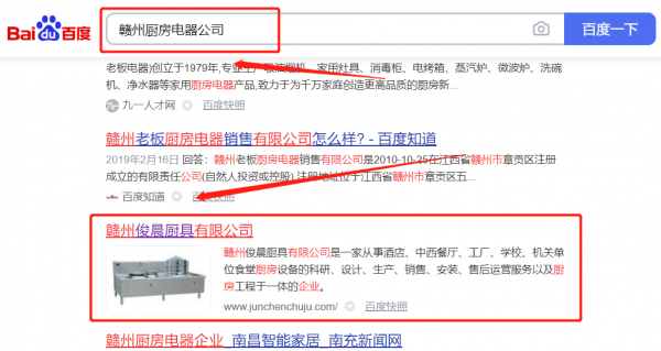 贛州俊*廚具有限公司網(wǎng)站排名排名效果展示