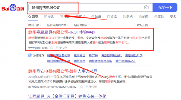 贛州嘉*廚具有限公司網(wǎng)站排名最快上詞效果展示
