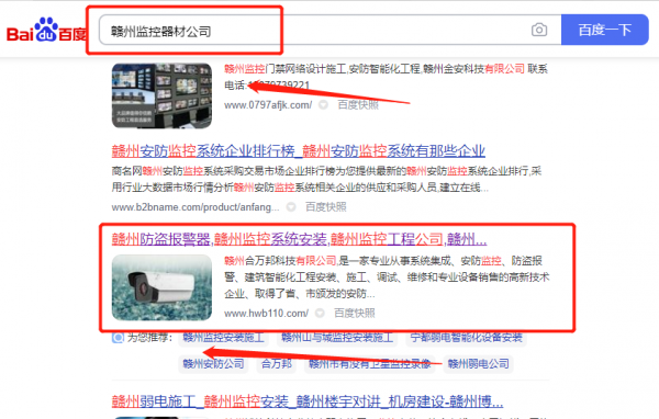 贛州合*邦科技有限公司選用我司企業(yè)監(jiān)控器材的網(wǎng)站優(yōu)化產(chǎn)品,其SEO關(guān)鍵詞有監(jiān)控器材。無論你關(guān)鍵詞是在20名內(nèi)、30名內(nèi)、還是50名內(nèi)。我們都可以在最短時間優(yōu)化至搜索引擎的首頁。提供后臺管理,排名查詢、關(guān)鍵詞管理、財(cái)務(wù)扣費(fèi)一目了然,一鍵操作。贛州合*邦科技有限公司成立于2016年,是經(jīng)贛州市市場監(jiān)督管理局審核的有資質(zhì)的公司,其統(tǒng)一社會信用代碼:91360702M**5GB8137。公司地址:江西省贛州市章貢區(qū)楊公路1號“金樽花園”10棟7號車庫。