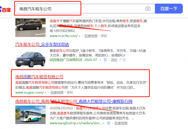 南昌*鵬汽車(chē)租賃有限公司與本司簽約百度快照排名協(xié)議