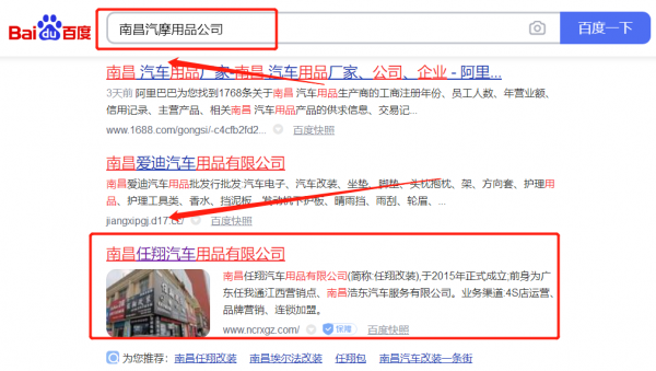 南昌任*汽車用品有限公司萬(wàn)詞霸屏排名效果展示