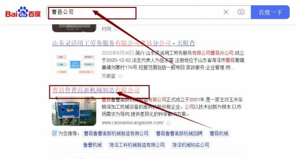 曹縣魯曹高*機械機械制造有限公司網(wǎng)站排名效果展示