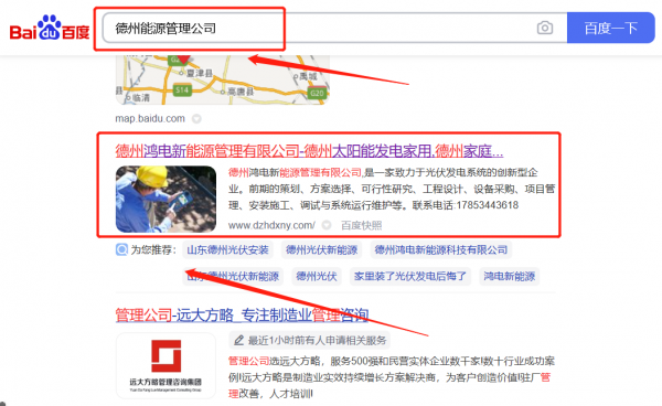 德州鴻*新能源管理有限公司優(yōu)化排名快上詞效果展示