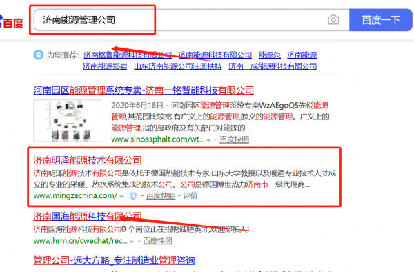 我們公司與濟南*澤能源技術(shù)有限公司合作中,對這個公司所經(jīng)營的能源管理這個行業(yè)提供了百度快照排名,與該公司的合作,更多的客戶讓我們公司為其提供百度快照排名,通過每一次合作,我們公司不斷完善自己,同時希望合作伙伴在經(jīng)營的路上越來越好。