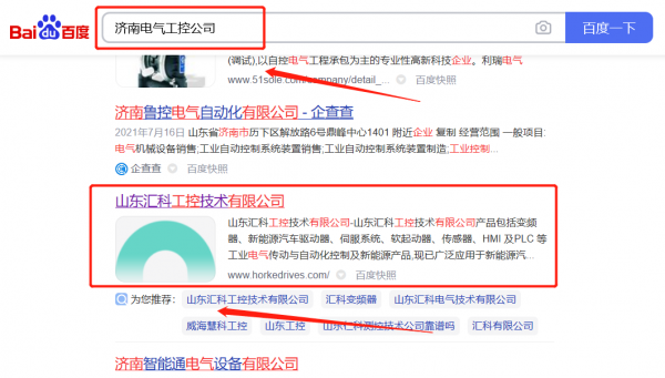 山東匯*工控技術(shù)有限公司百度排名快上詞效果展示