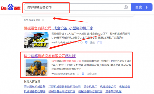 濟寧建*機械設備有限公司關鍵詞排名排名效果展示