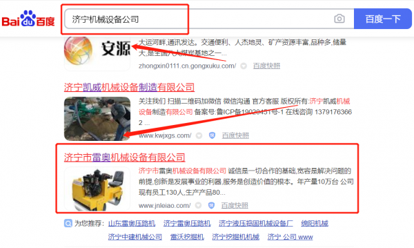 濟(jì)寧市雷*機(jī)械設(shè)備有限公司關(guān)鍵詞排名保證在首頁效果