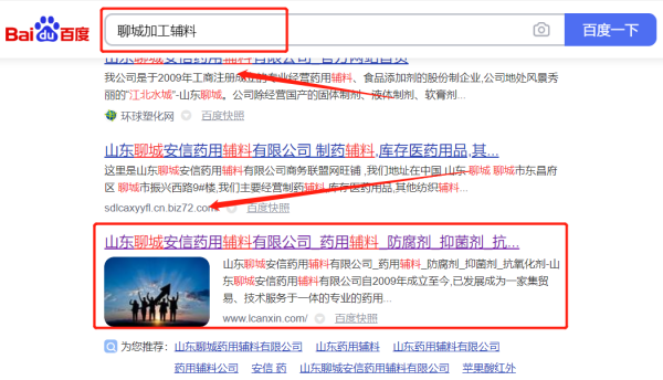 山東聊城*信藥用輔料有限公司網(wǎng)站SEO優(yōu)化排名效果展示