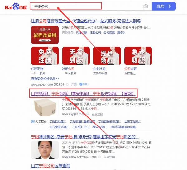 寧陽永*紙箱廠網站優(yōu)化排名效果展示