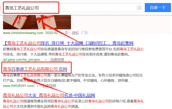 我們公司與青島百事德工藝禮品有限公司合作中,對(duì)這個(gè)公司所經(jīng)營(yíng)的工藝禮品這個(gè)行業(yè)提供了百度快照排名,與該公司的合作,更多的客戶讓我們公司為其提供百度快照排名,通過(guò)每一次合作,我們公司不斷完善自己,同時(shí)希望合作伙伴在經(jīng)營(yíng)的路上越來(lái)越好。