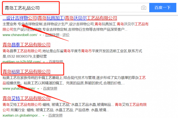 我們公司與青島裕昊工藝品有限公司合作中,對(duì)這個(gè)公司所經(jīng)營(yíng)的工藝禮品這個(gè)行業(yè)提供了百度快照排名,與該公司的合作,更多的客戶讓我們公司為其提供百度快照排名,通過(guò)每一次合作,我們公司不斷完善自己,同時(shí)希望合作伙伴在經(jīng)營(yíng)的路上越來(lái)越好。