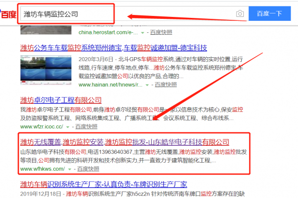 我們公司與山東皓華電子科技有限公司合作中,對(duì)這個(gè)公司所經(jīng)營(yíng)的車輛監(jiān)控這個(gè)行業(yè)提供了百度快照排名,與該公司的合作,更多的客戶讓我們公司為其提供百度快照排名,通過每一次合作,我們公司不斷完善自己,同時(shí)希望合作伙伴在經(jīng)營(yíng)的路上越來越好。
